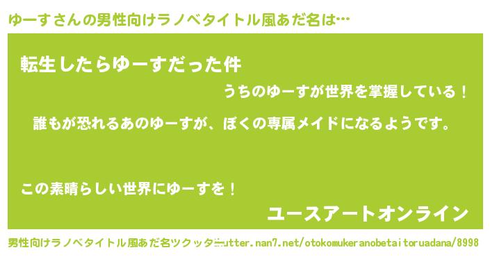 | 胡散臭い通販商品みたいなあだ名 | 『前代未聞の健康食品…その名も「ゆーす」』 |