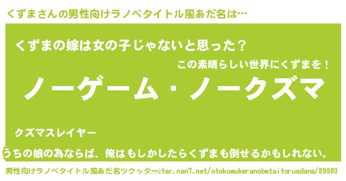 | 女子向けラノベタイトル風あだ名 | 『くずま恋絵巻』『くずま様がみてる』 |