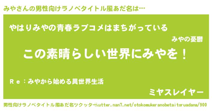 | ヒーロー風カッコイイあだ名 | 『仮面ミヤダー』『ウルトラみやマン』 |
