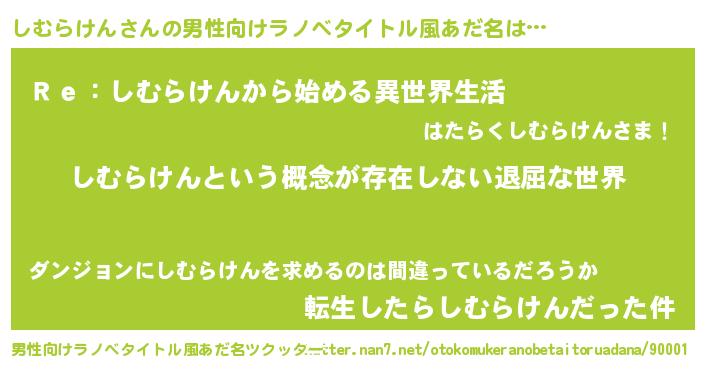 | 意味不明あだ名 | 『永久保存しむらけん』『自称しむらけん』 |