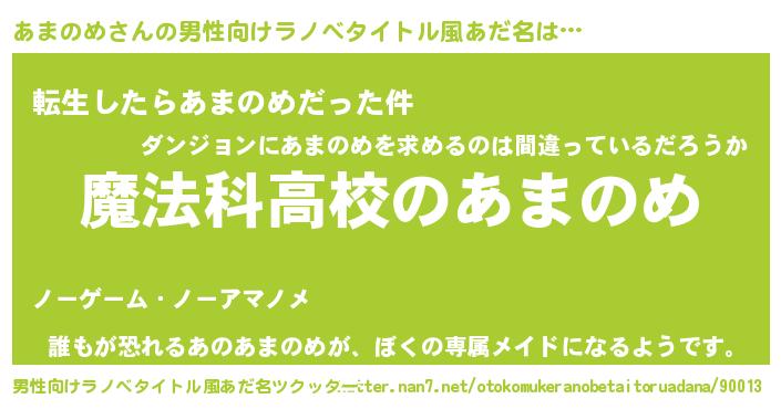 | ヘコむあだ名 | 『あまのめ(苦笑)』『あまお』 |