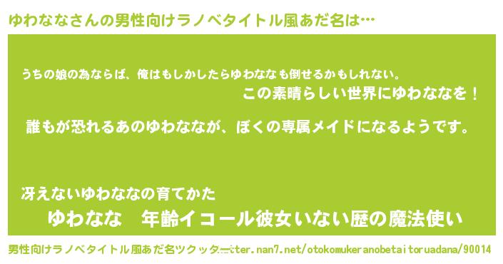 | 意味不明あだ名 | 『永久保存ゆわなな』『ペロリンゆわなな』 |