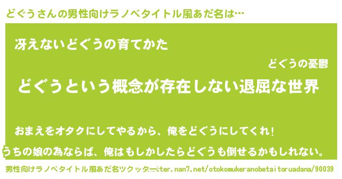 | 胡散臭い通販商品みたいなあだ名 | 『絶対に幸福をもたらす健康食品…その名も「どぐう」』 |