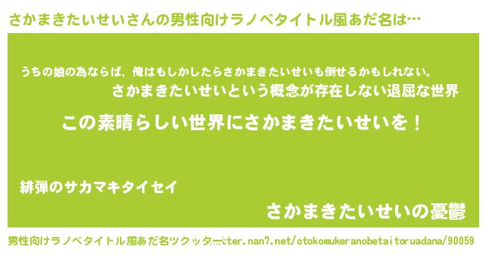 | 意味不明あだ名 | 『住所不定無職さかまきたいせい(7歳)』 |