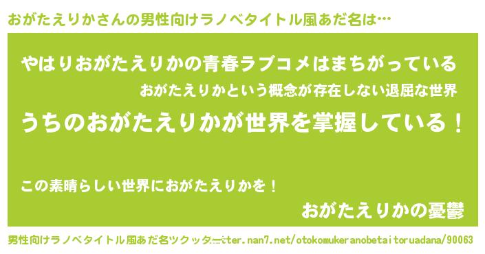 おがたえりかさんの男性向けラノベタイトル風あだ名をツクッター!