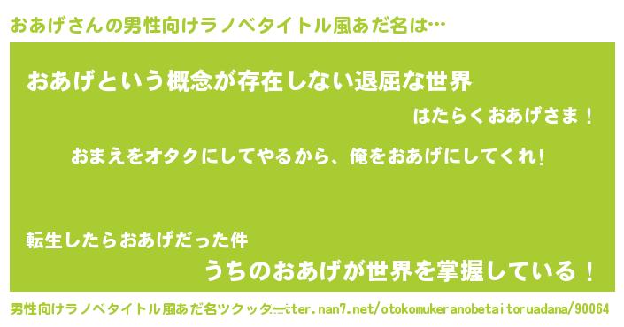 | ヒーロー風カッコイイあだ名 | 『正義の使者おあげ』『ネオオアゲ』 |