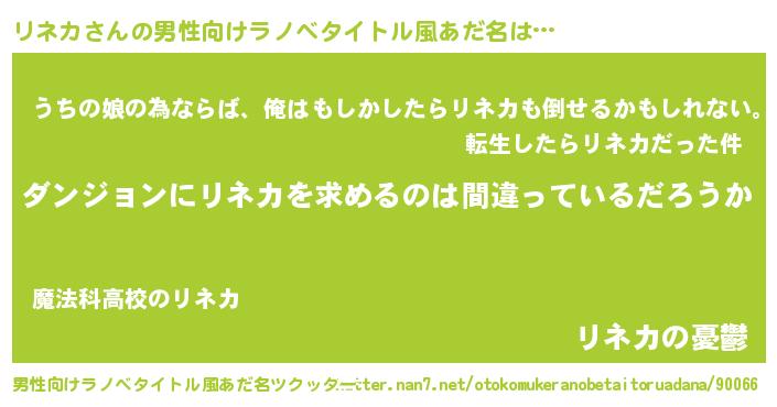 | ヒーロー風カッコイイあだ名 | 『魔戒騎士リネ』『ウルトラリネカマン』 |