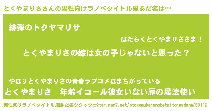 | 女子向けラノベタイトル風あだ名 | 『とくやまりさ様がみてる』 |