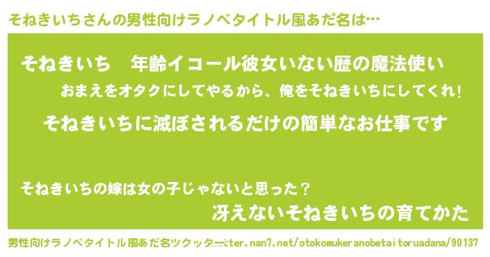 そねきいちさんの男性向けラノベタイトル風あだ名をツクッター!
