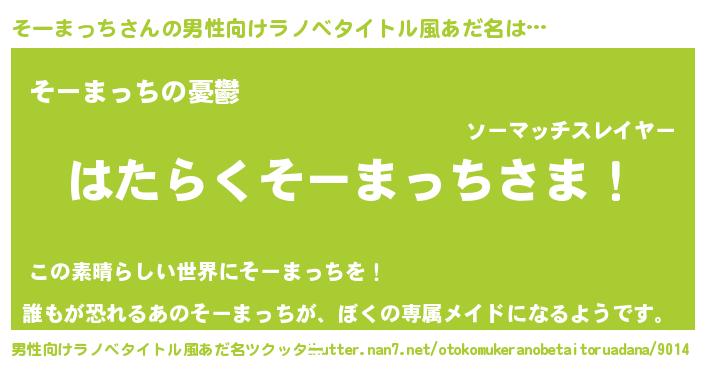 | 胡散臭い通販商品みたいなあだ名 | 『モテモテ間違いなし霊験あらたかなお札…その名も「そーまっち」』 |