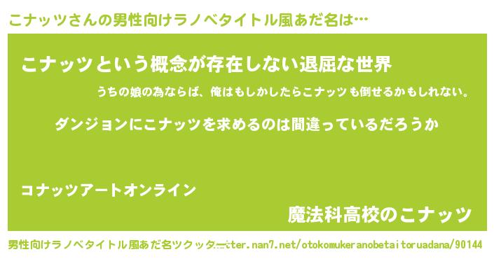 | 女子向けラノベタイトル風あだ名 | 『こナッツは平凡を望む』 |