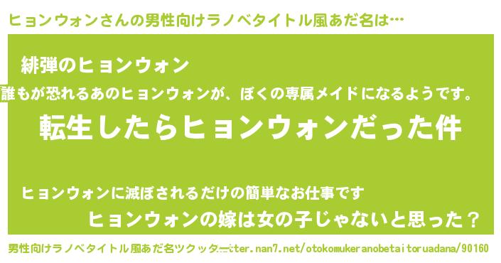 | ヘコむあだ名 | 『ヒョぷりん』『ヒョンウォン(小並感)』 |