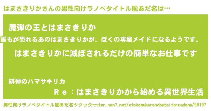 | ヘコむあだ名 | 『はまさきりか(苦笑)』『はまっ子』 |