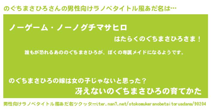 | ヒーロー風カッコイイあだ名 | 『ネオノグチマサヒロ』『魔戒騎士ノグ』 |