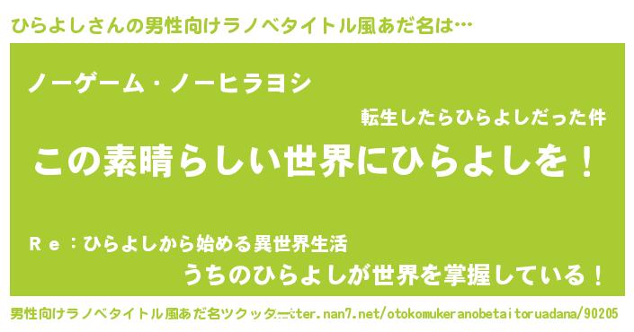 | ヒーロー風カッコイイあだ名 | 『仮面ヒラダー』『慈愛の使者ひらよし』 |