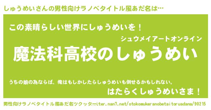 しゅうめいさんの男性向けラノベタイトル風あだ名をツクッター!