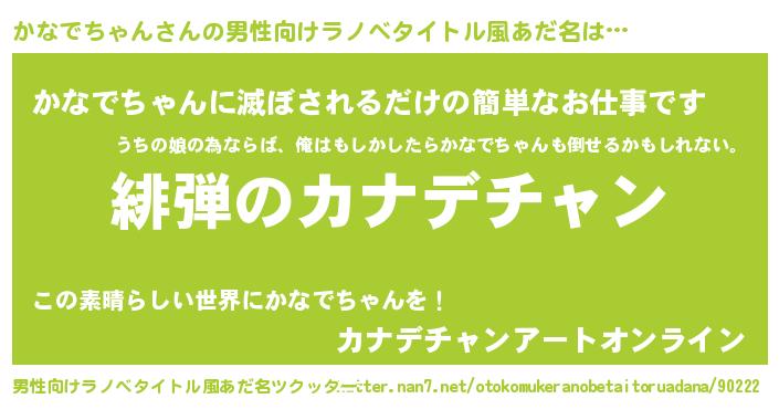 | 胡散臭い通販商品みたいなあだ名 | 『必ず成功する霊験あらたかなお札…その名も「かなでちゃん」』 |