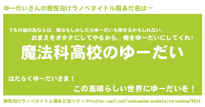 | ファンタジー風あだ名 | 『ゼユートゥ』『エターナルユーダイー』 |