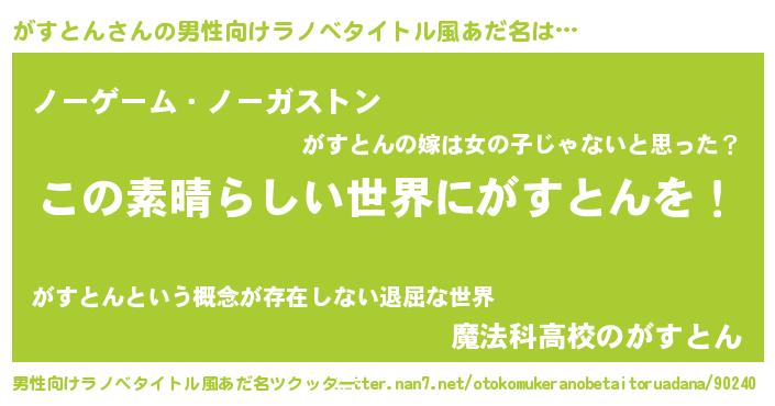 | 胡散臭い通販商品みたいなあだ名 | 『世界中を虜にした世界で10本だけ現存している希少なブランデー…その名も「がすとん」』 |