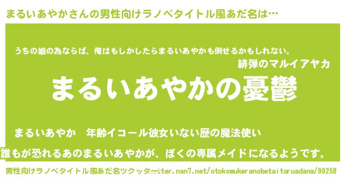| 女子向けラノベタイトル風あだ名 | 『(仮)まるいあやかのやんごとなき事情』 |