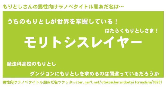 | 胡散臭い通販商品みたいなあだ名 | 『信頼と実績のサプリメント…その名も「もりとし」』 |