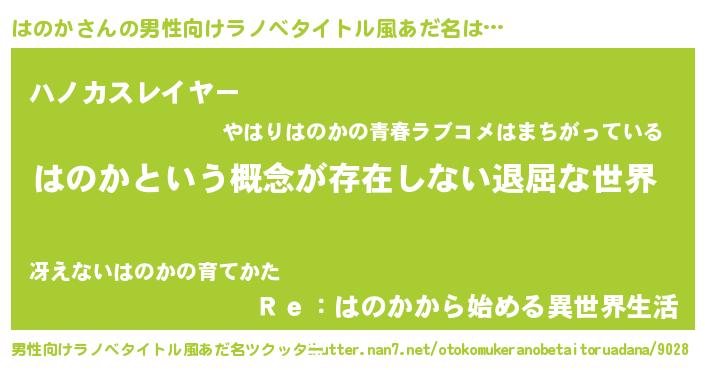 | 胡散臭い通販商品みたいなあだ名 | 『来世でも幸せになれる水素水…その名も「はのか」』 |