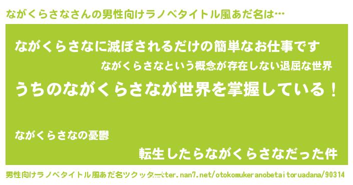 | 女子向けラノベタイトル風あだ名 | 『男装ながくらさなの憂鬱な任務』 |