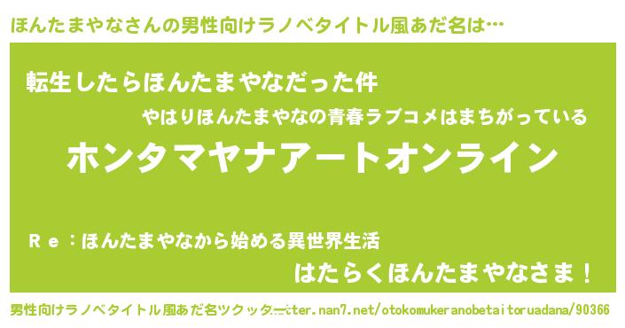 | 女子向けラノベタイトル風あだ名 | 『誰かこのほんたまやなを説明してください! ~契約から始まるウェディング~』 |
