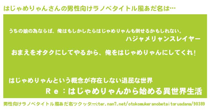 | 女子向けラノベタイトル風あだ名 | 『はじゃめりゃん夫妻のなれそめ』 |