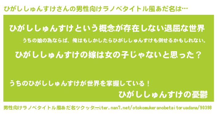 | 女子向けラノベタイトル風あだ名 | 『ひがししゅんすけ様がみてる』 |