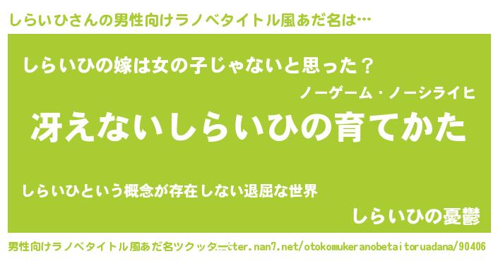 | 胡散臭い通販商品みたいなあだ名 | 『伝統あるサプリメント…その名も「しらいひ」』 |
