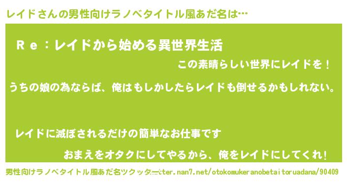 | 意味不明あだ名 | 『レイドフォーエバー』『自称レイド』 |