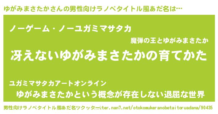 | 女子向けラノベタイトル風あだ名 | 『男装ゆがみまさたかの憂鬱な任務』 |