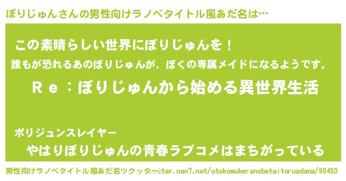 | 胡散臭い通販商品みたいなあだ名 | 『芸能人もオススメするアガリクス…その名も「ぼりじゅん」』 |