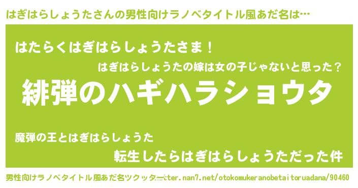 | 胡散臭い通販商品みたいなあだ名 | 『信頼と実績のペンダント…その名も「はぎはらしょうた」』 |