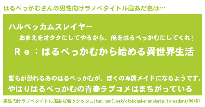 | 意味不明あだ名 | 『自称はるべっかむ』 |