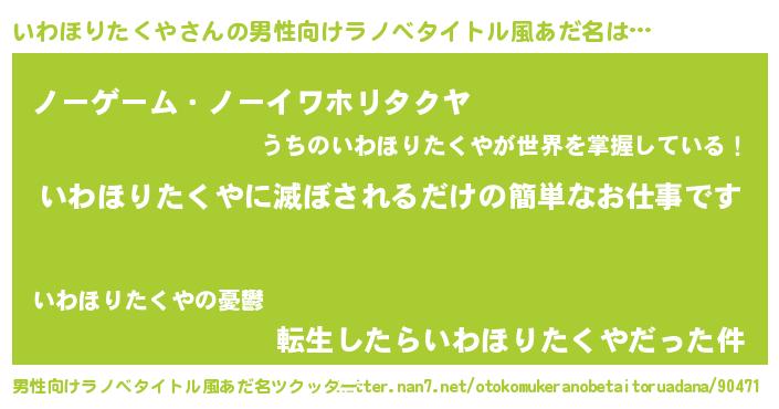 | 伝説のあだ名 | 『救世主となる錬金術士いわほりたくや』 |
