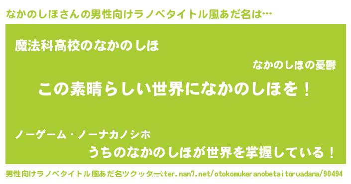 | 女子向けラノベタイトル風あだ名 | 『悪役なかのしほに転生したようですが、知った事ではありません』 |