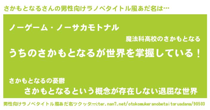 | ヘコむあだ名 | 『さかもとなる(爆)』『さかふぇ~』 |