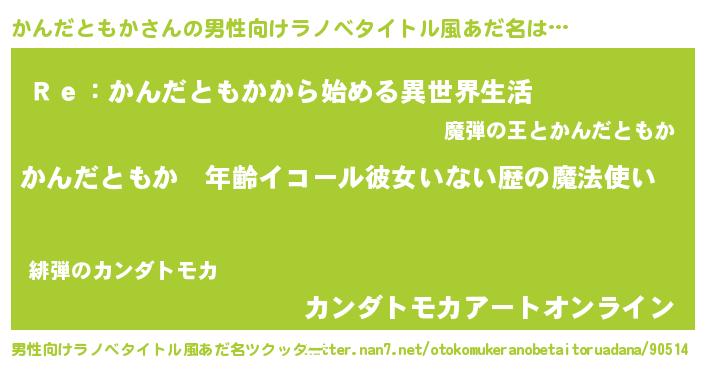 | 女子向けラノベタイトル風あだ名 | 『かんだともかの玉の輿計画!』 |