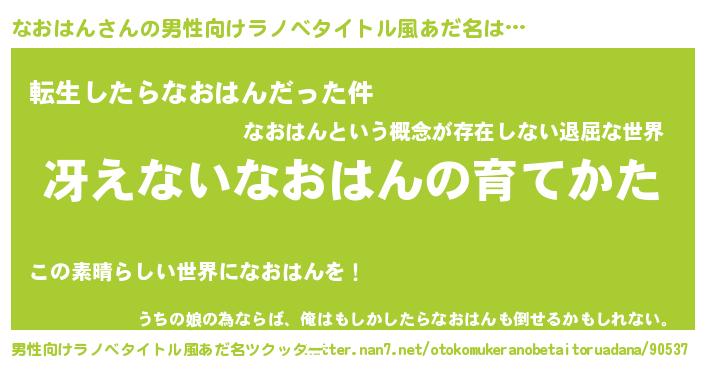 | 女子向けラノベタイトル風あだ名 | 『男装なおはんの憂鬱な任務』 |