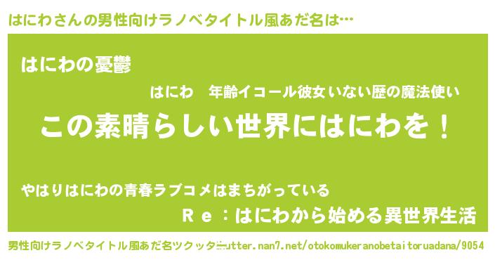 | 意味不明あだ名 | 『住所不定無職はにわ(95歳)』『自称はにわ』 |
