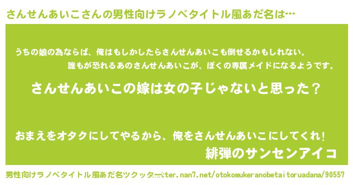 | ポケモン風あだ名 | 『ヒサンセンアイコ』『サンセダネ』 |