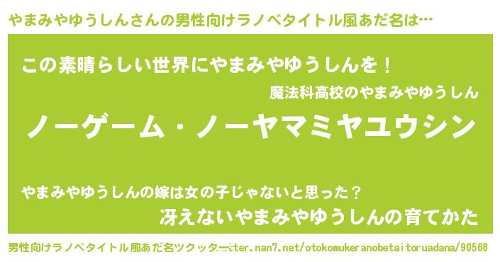 | 女子向けラノベタイトル風あだ名 | 『死神やまみやゆうしんの再婚』 |