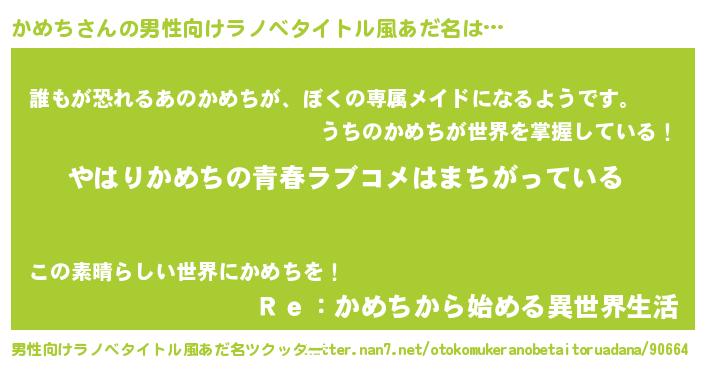 | 女子向けラノベタイトル風あだ名 | 『かめちの雑貨屋さん』 |