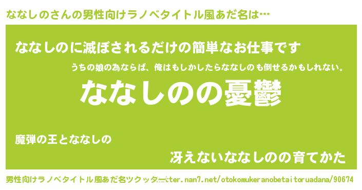| 胡散臭い通販商品みたいなあだ名 | 『必ず成功するブレスレット…その名も「ななしの」』 |
