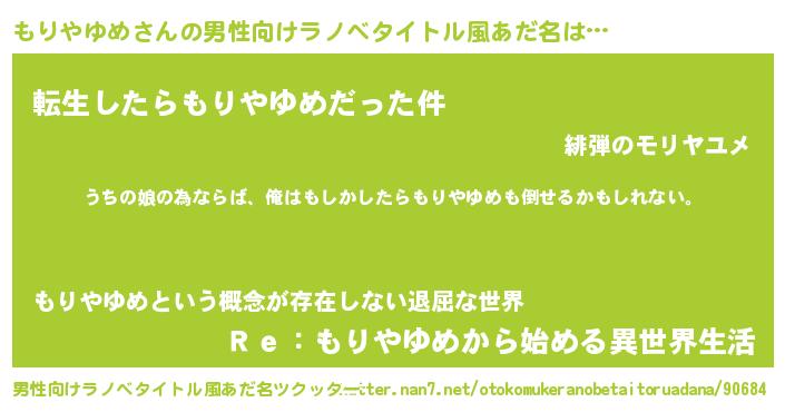 | ファンタジー風あだ名 | 『エターナルモリヤユメー』『ゼモリトゥ』 |