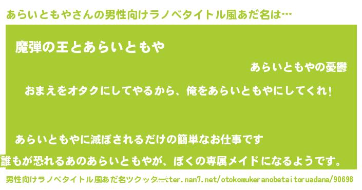 | ヘコむあだ名 | 『あらいともや(小並感)』『あらにー』 |