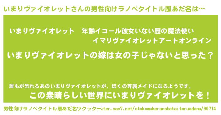 | 欧米人風あだ名 | 『ウサインいまりヴァイオレット』 |