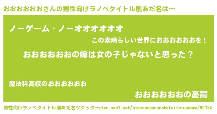 | 女子向けラノベタイトル風あだ名 | 『おおおおおお様がみてる』 |